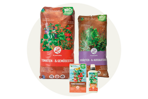 Je nach Sorte wird das Balkongemüse entweder auf dem Fensterbrett vorgezogen oder direkt nach draussen gesät. Für die Anzucht wird am besten ein nährstoffarmes Substrat wie unsere Plantura Bio-Kräuter- & Aussaaterde verwendet, die ein starkes Wurzelwachstum der Keimlinge fördert. Sobald sich das zweite Blattpaar an den Pflänzchen gebildet hat, können sie in eine nährstoffreiche Erde wie unsere Plantura Bio-Tomaten- & Gemüseerde pikiert werden. Düngen nicht vergessen: Unser flüssiger Plantura Bio-Tomaten- & Gemüsedünger wird einfach alle 1 bis 2 Wochen ins Giesswasser gegeben.