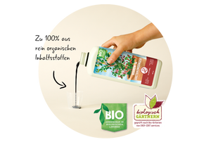 Für leckeres Obst enthält unser Bio-Beerendünger rein pflanzliche und natürliche Inhaltsstoffe. Alle verwendeten Rohstoffe sind von tierfreiem Ursprung und für den biologischen Landbau zugelassen (gemäss Verordnung (EU) 2018/848). Es handelt sich um einen zu 100% organischen Bio-Flüssigdünger, welcher aus pflanzlichen Stoffen aus der Lebens-, Genuss- und Futtermittelherstellung, pflanzlichem Eiweisshydrolysat und lebenden Mikroorganismen (Bacillus amyloliquefaciens FZB45) zusammengesetzt ist.