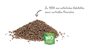 Unser Bio-Blumendünger setzt sich zu 100% aus natürlichen Inhaltsstoffen und wertvollen Mineralien zusammen. Er enthält Vinasse und Mehl von Ölkuchen aus Traubenkernen sowie Sojabohnen. Zudem beinhaltet unser Bio-Dünger Kakaoschalen und das Mineral Rohphosphat. Alle Rohstoffe, die in unserem Blumendünger verwendet werden, sind für den biologischen Landbau zugelassen (EG Nr. 889/2008). Unser Dünger kommt komplett ohne tierische Abfallprodukte aus und ist somit tierfrei/vegan.