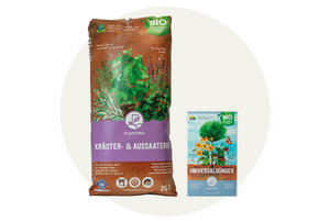 Auf einer warmen und hellen Fensterbank kann das Kräuter-Saatgut ganzjährig ausgesät werden. Wer draussen einen Kräutergarten anlegen möchte, hält sich am besten an die angegebenen Aussaat-Zeiträume auf den Samentütchen. Die meisten Kräuter bevorzugen eine nährstoffarme, locker-luftige Erde. Deshalb empfiehlt sich zur Aussaat und zum Einpflanzen ein spezielles Substrat wie unsere Plantura Bio-Kräuter- & Aussaaterde. Für eine langfristige Nährstoffversorgung verwenden Sie am besten einen vornehmlich organischen Bio-Langzeitdünger wie unseren Plantura Bio-Universaldünger.