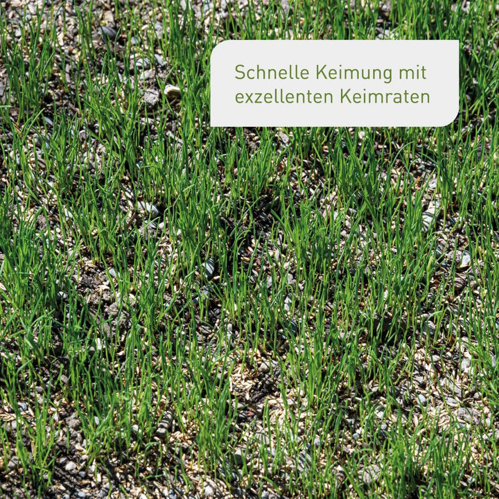 Für rekordverdächtige Keimraten sorgt die spezielle Ummantelung, mit der alle Samen versehen sind. Diese erleichtert übrigens auch die Ausbringung der Rasensamen. Ausserdem schützt die Profi-Ummantelung die Nachsaat-Rasensamen in der Anfangszeit vor dem Austrocknen. So erstrahlt Ihre Rasenfläche schon bald wieder in sattem Grün und kann sich konkurrenzstark gegen Unkraut und Moos durchsetzen.