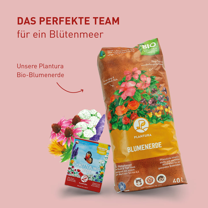 Zusammen mit Experten haben wir ein echtes Lieblingsmenü für heimische Schmetterlingsarten und ihre Raupen erstellt. Dazu zählen Falter wie Schwalbenschwanz, Himmelblauer Bläuling oder Admiral. Auf ganz natürliche Weise locken die Blüten auch weitere Nützlinge in Ihren Garten oder auf den Balkon. Bienen, Hummeln und Co. erfreuen sich ebenfalls an der Schmetterlingswiese, auch wenn diese speziell auf Schmetterlinge abgestimmt ist.