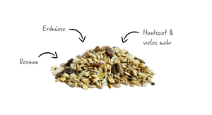 Wir haben unser Streufutter so zusammengestellt, dass sich sowohl Körner- als auch Weichfutterfresser gerne daran bedienen. Sonnenblumenkerne und Erdnüsse sorgen dabei für extra viel Fett und Energie, während Haferflocken und Rosinen ideal für Weichfutterfresser wie Amseln und Kleiber geeignet sind. Eine ausgewogene Ernährung ist auch bei Vögeln wichtig - deshalb runden proteinreiche Hanfsamen und Rote Dari-Hirse unser hochwertiges Streufutter ab.